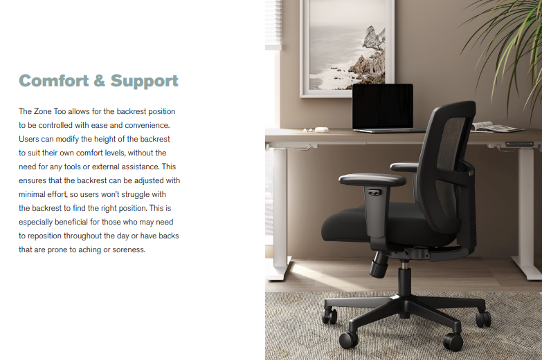 Whether you prefer a neutral palette or a pop of color, the Zone Too offers both comfort and personality, making it a great fit for any workspace.