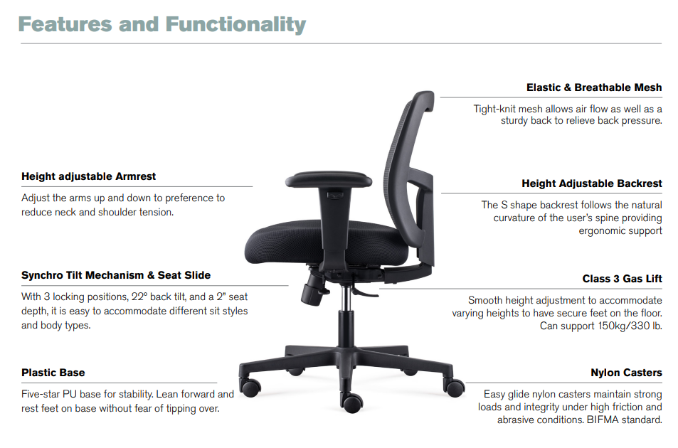 Sliding seat pan: Provides 2 inches of seat depth adjustment to support a variety of body types.